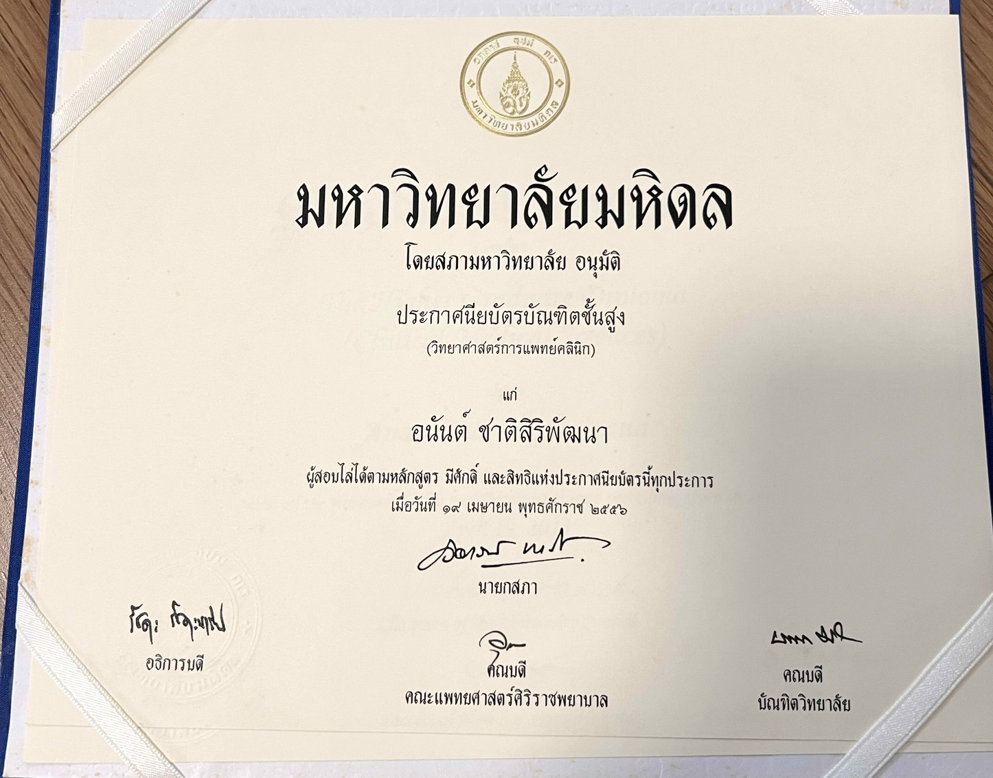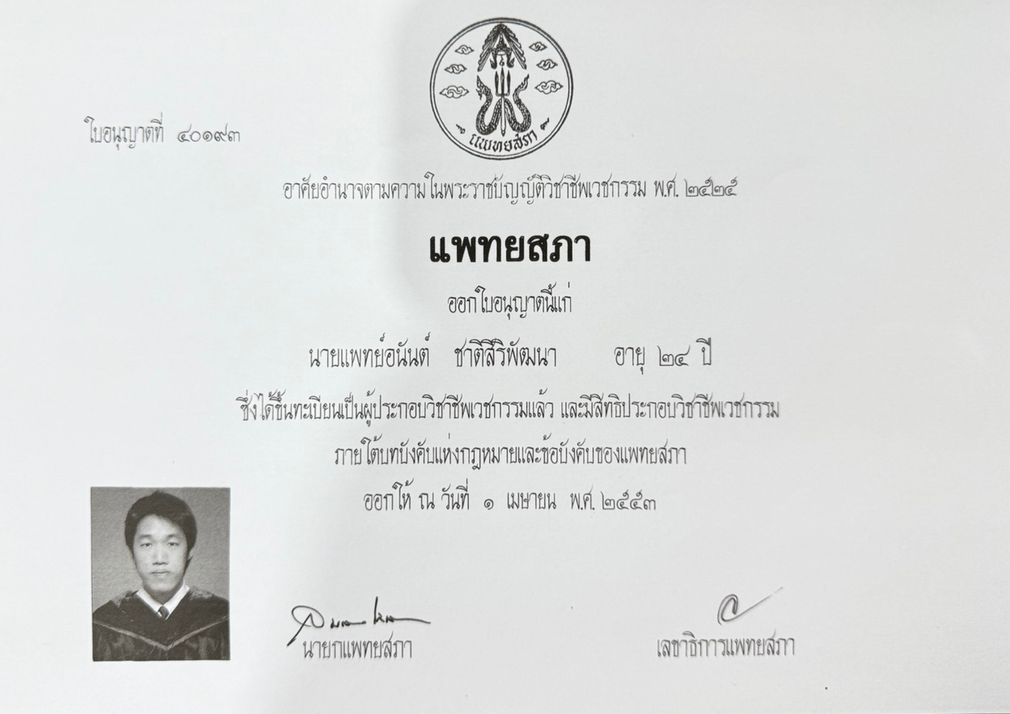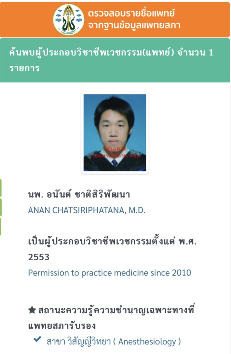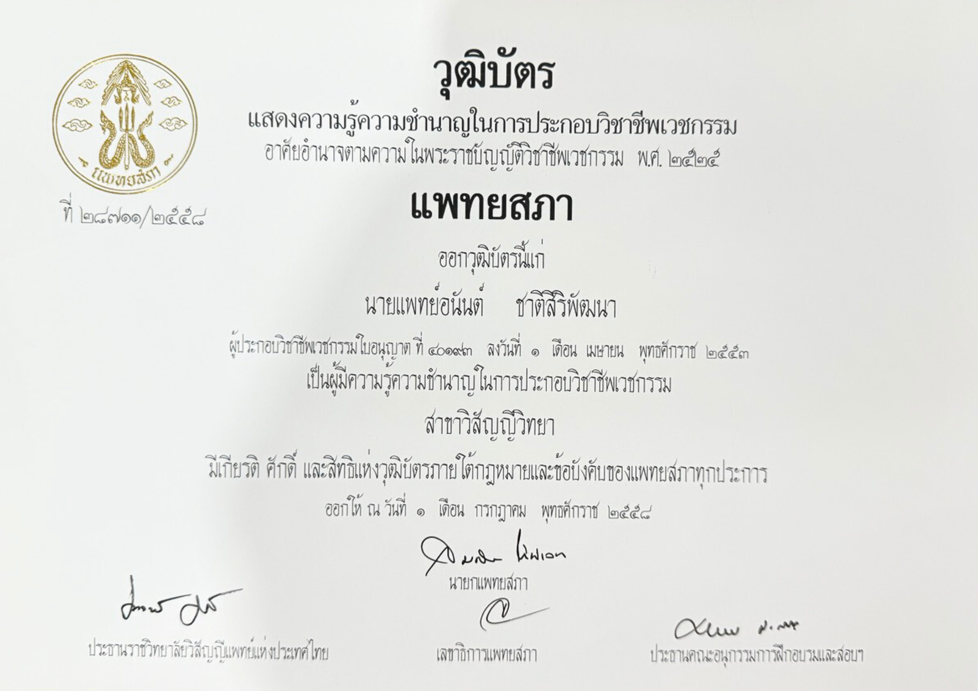 - นายแพทย์อนันต์ ชาติสิริพัฒนา เลขที่ใบอนุญาตประกอบวิชาชีพเวชกรรม 40193
