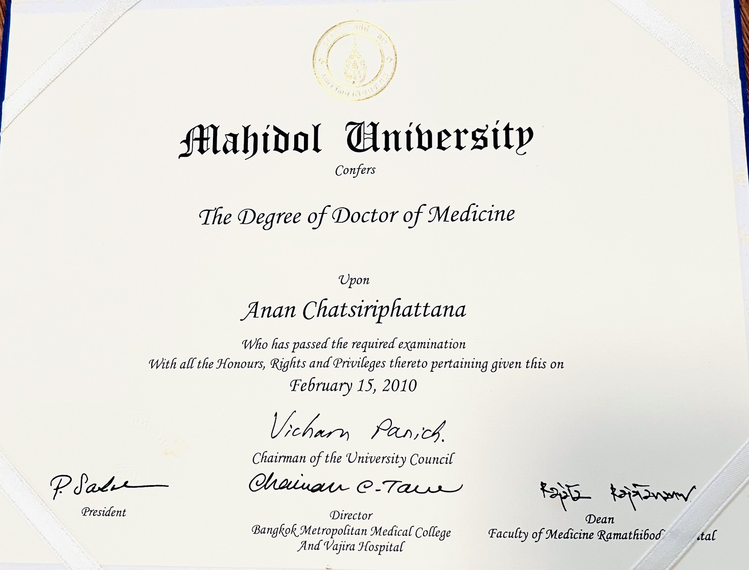 จากคณะแพทยศาสตรศิริราชพยาบาล มหาวิทยาลัยมหิดล - ศึกษาต่อด้าน ฝังเข็ม กระทรวงสาธารสุข ร่วมกับการแพทย์แผนจีนเทียนจิน